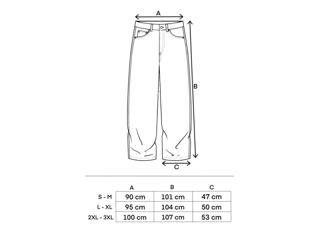 Nabízíme tři velikosti S-M, L-XL a XXL-3XL, přesné rozměry kalhot najde níže.