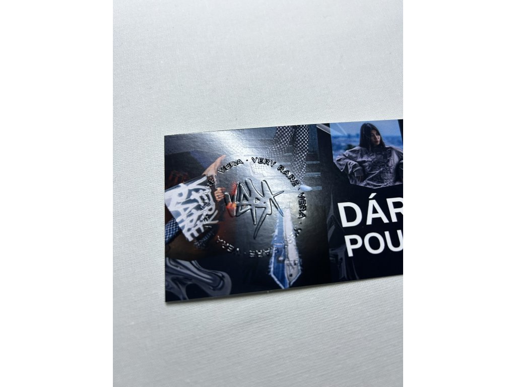 Je vyrobený z tvrdého prémiového papíru s matným potiskem. Na levé straně je ručně vyražené logo, které dodává poukazu nevšední a autentický vzhled.