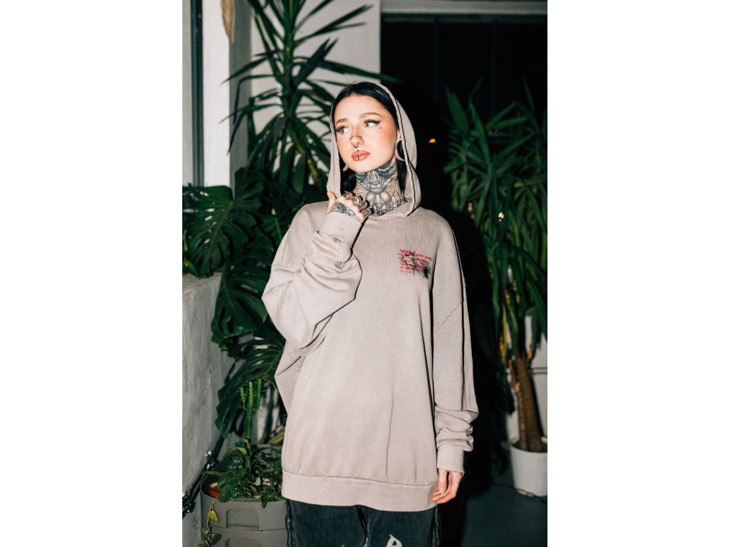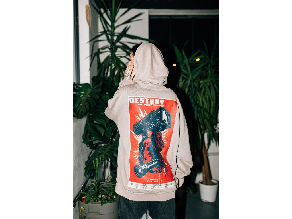 MIKINA S KAPUCÍ "DESTROY PROPAGANDA" - ŠEDÁ