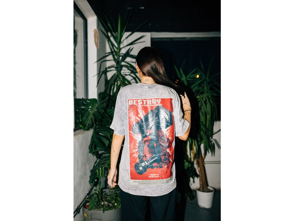 SEPRANÉ TRIČKO "DESTROY PROPAGANDA" - ŠEDÉ