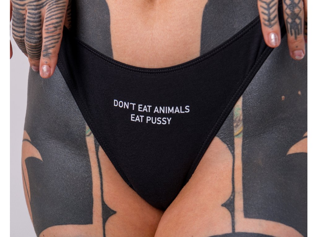 Dámské tanga DON´T EAT ANIMALS jsou vyrobené ze 100% BIO BAVLNY, tento materiál zaručuje maximální pohodlí a komfort.